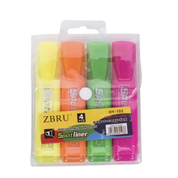 每包4支——3/6支装荧光笔斜角点描笔文本标记笔涂鸦学校办公用品